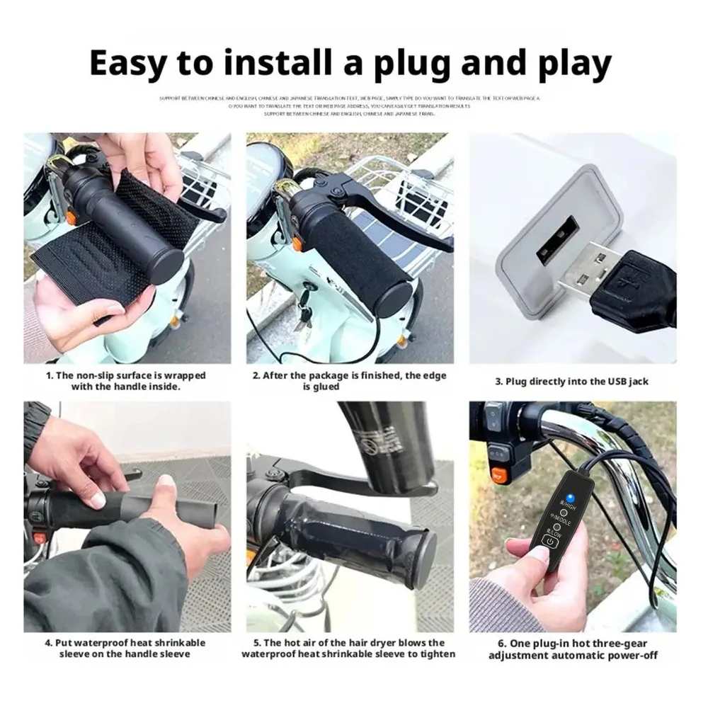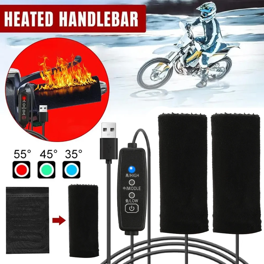 These USB heated handlebar grips are perfect for keeping your hands warm during cold rides. Designed for motorcycles and scooters, they provide consistent heat for winter comfort. The 5V 2A USB connection allows easy power from your bike or portable charger. Built with durable materials, they resist wear and harsh weather conditions. The grips are easy to install and fit most standard handlebars. Ideal for long commutes, touring, or off-road winter adventures. Ergonomically designed, they allow full control of throttle, brakes, and clutch. The heated grips reduce hand fatigue and improve riding safety in cold weather. Lightweight and compact, they do not interfere with bike aesthetics or handling. Upgrade your ride with these heated handlebar grips for maximum comfort and performance in winter conditions.